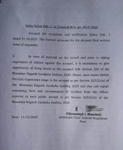 पुणे महानगरपालिकेतील एका कर्मचाऱ्याविरोधात कर्तव्यातील कथित गंभीर निष्काळजीपणा, तक्रारीकडे दुर्लक्ष व गैरवर्तन याबाबत दाखल करण्यात आलेल्या खासगी तक्रारीवर पुणे येथील अतिरिक्त मुख्य न्यायिक दंडाधिकारी न्यायालयाने (ACJM), शिवाजीनगर गंभीर दखल घेतली आहे.
