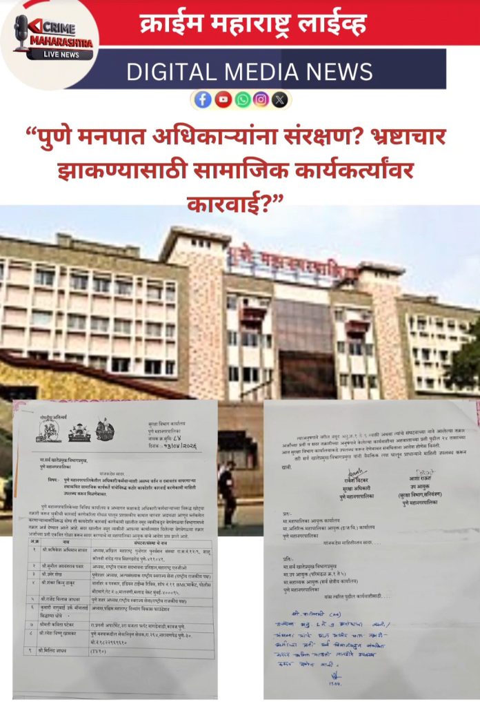सुरक्षा विभाग कार्यालय, पुणे महानगरपालिका यांच्या मार्फत दि. १३/०४/२०२६ रोजी जारी करण्यात आलेल्या पत्रानुसार, विविध विभागांकडे वारंवार तक्रारी करून प्रशासकीय कामकाजात अडथळे निर्माण केल्याच्या तक्रारी प्राप्त झाल्या आहेत. या तक्रारींची एकत्रित माहिती गोळा करून संबंधितांवर कायदेशीर कारवाई करण्याचे निर्देश देण्यात आले आहेत.