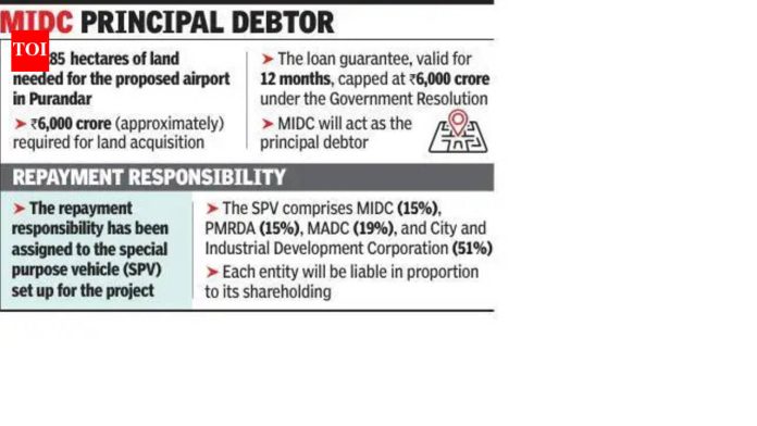 पुणे: राज्याच्या वित्त विभागाने शुक्रवारी प्रस्तावित पुरंदर विमानतळासाठी भूसंपादनासाठी 6,000 कोटी रुपयांच्या हमीच्या अटींचा तपशील देणारा शासन निर्णय (GR) जारी केला.सुरक्षितता, उत्तरदायित्व कलम आणि देखरेख निकषांवर जोर देऊन, जीआर महाराष्ट्र औद्योगिक विकास महामंडळ (MIDC) ला गृहनिर्माण आणि नागरी विकास महामंडळ किंवा इतर वित्तीय संस्थांकडून स्पर्धात्मक दरांवर कर्ज उभारण्याची परवानगी देतो. हे राज्य मंत्रिमंडळाच्या 10 फेब्रुवारीच्या मंजुरीनंतर संरचना देखील औपचारिक करते आणि उद्योग विभागाच्या पूर्वीच्या आदेशाची जागा घेते.ग्रीनफिल्ड विमानतळ प्रकल्पासाठी पुरंदरमधील वनपुरी, कुंभारवळण, उधाचीवाडी, एकतपूर, मुंजवडी, खानवडी आणि पारगाव या सात गावांमध्ये सुमारे 1,285 हेक्टर (जवळपास 3,000 एकर) जमिनीची आवश्यकता आहे. भूसंपादनासाठी सुमारे ६,००० कोटी रुपये लागतील.जीआर अंतर्गत, हमी रु. 6,000 कोटी इतकी मर्यादित आहे. ते 12 महिन्यांसाठी वैध राहील. MIDC मुख्य कर्जदार म्हणून काम करेल आणि कर्जदार राज्य सरकारच्या पूर्व परवानगीशिवाय मंजूर मर्यादेपेक्षा जास्त कर्ज देऊ शकत नाहीत. भूसंपादनासाठी निधी काटेकोरपणे वापरला गेला पाहिजे.परतफेडीची जबाबदारी प्रकल्पासाठी स्थापन करण्यात आलेल्या स्पेशल पर्पज व्हेइकल (SPV) वर सोपवण्यात आली आहे. SPV मध्ये MIDC (15%), पुणे महानगर प्रदेश विकास प्राधिकरण (15%), महाराष्ट्र विमानतळ विकास कंपनी (19%), आणि शहर आणि औद्योगिक विकास महामंडळ (51%) यांचा समावेश आहे. प्रत्येक घटक तिच्या शेअरहोल्डिंगच्या प्रमाणात उत्तरदायी असेल.“जीआर राज्याच्या आर्थिक एक्सपोजरवर कुंपण घालण्याचा प्रयत्न करतो. जर अपरिहार्य परिस्थितीमुळे SPV कर्जाची सेवा देण्यात अयशस्वी ठरले, तर सरकार तिच्या आर्थिक स्थितीचे मूल्यांकन करून पाऊल उचलू शकते, परंतु हमी आपोआप राज्याच्या तिजोरीवर थेट बोजा बनत नाही,” असे राज्य वित्त विभागातील एका अधिकाऱ्याने सांगितले.मुख्य कलम कर्ज देणाऱ्या संस्थांना ९० दिवसांच्या आत परतफेड किंवा व्याजात कोणतीही चूक झाल्याचा अहवाल देण्यास बंधनकारक करते. अटींचे कोणतेही उल्लंघन हमी अवैध ठरू शकते.एमआयडीसीला केवळ आवश्यक रक्कम वाढवण्याचे आणि अंतिम वापराचे कठोर पालन सुनिश्चित करण्याचे निर्देश देण्यात आले आहेत. त्याने लेखापरीक्षित खाती आणि नियतकालिक आर्थिक अद्यतने सादर करणे आवश्यक आहे, तर SPV ने उद्योग आणि वित्त विभागांना मासिक परतफेड प्रगती अहवाल सादर करणे आवश्यक आहे.GR थकित रकमेवर दरवर्षी 0.5% हमी शुल्क निर्धारित करते, दर सहा महिन्यांनी देय. विलंब झाल्यास पहिल्या तीन महिन्यांसाठी 16% आणि त्यानंतर 24% दंडात्मक व्याज मिळेल, देयके एका विशिष्ट शीर्षकाखाली सरकारी तिजोरीत जमा केली जातील.उद्योग आण