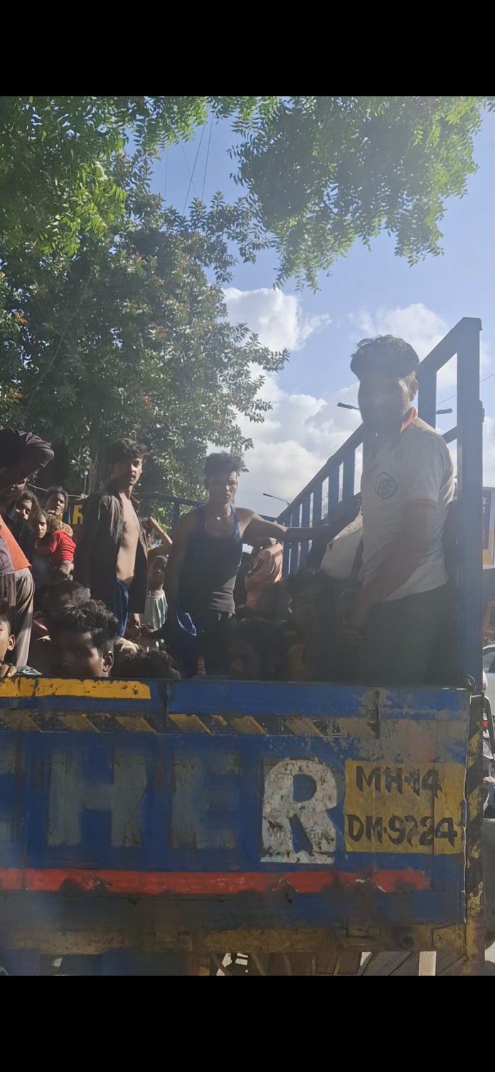 पुणे (मगरपट्टा-मुंढवा रोड) – शहराच्या मध्यवर्ती भागात असलेल्या मगरपट्टा-मुंढवा रोडवर आज एक अत्यंत हृदयद्रावक चित्र समोर आले आहे. ‘MH14 DN 9724’ क्रमांकाच्या एका जुनाट ट्रकमध्ये परराज्यातून आलेले कामगार व लहान मुले, यांना एकत्र कोंबून नेले जात असल्याचे दृश्य स्थानिकांनी पाहिले. हे कामगार पूर्णतः थकलेले, भुकेले, आणि दिवसन्‌दिवस अंघोळ न केलेल्या अवस्थेत दिसून आले.